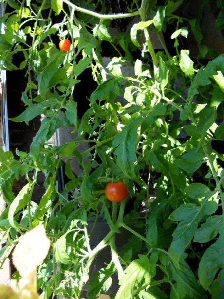 Our own tiny garden in our window is proving very fruitful indeed! Saddened by four years with no outdoor space of our own, we planted two lovely tomato plants in hanging baskets in one of our south-facing windows. It’s pretty wonderful to be able to eat food you’ve grown yourself, even on a very small scale!