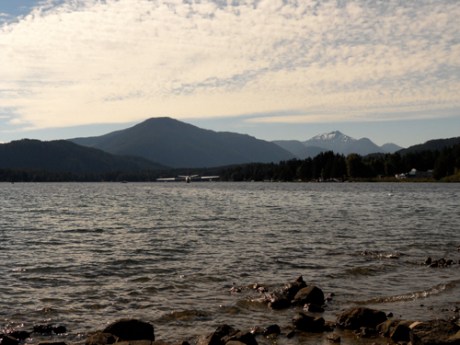 K & R were kind enough to drive us all, and we took our time and enjoyed the scenery. A stop Coombs for a few groceries; sadly we saw no goats! We stopped at Cathedral Grove for a walk through the ancient forest and then onto Sproat Lake for a picnic lunch. We pulled into our delightful cottage at the Gold Coast Retreat late afternoon and headed straight for Chesterman Beach, accessed just across the road. The clouds had rolled in, but it was still very beautiful.