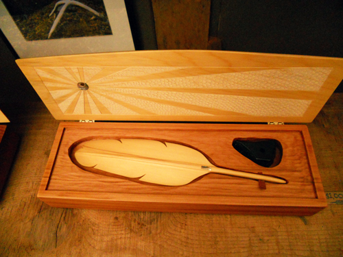 All kinds of weather and unexpected moments of delight: this is what to expect of this beautiful part of our province. We had fog and lots of it, which is fine with me! It made it’s way peacefully across the beaches and through the trees around our cottage. And we had some sun, which was an unexpected treasure. Perhaps my favourite moment of delight was stumbling into The Carving Shed, just on Chesterman Beach below the Wickaninnish Inn. The former studio and home of the late Henry Nolla, the shed is now occupied by local carvers. The day we were there, we met George Yearsley with whom we visited for some time. His delicate carvings of Eagle feathers as well as his gentle welcoming nature are delightful. Another beautiful place to visit in Tofino is the Eagle Aerie Gallery on Campbell Street. The building is a work of art, and the beautiful work of Roy Henry Vickers grace the walls.