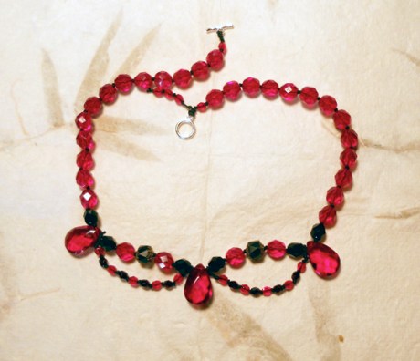 Red and black glass with sterling clasp; © 2011 Firehorse Designs