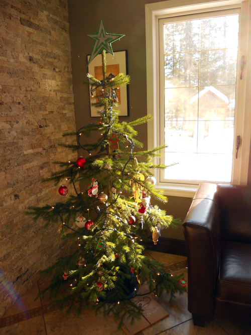 The sweet tree at our friends' house in Salmo. The cut it themselves on their acreage and most of the decorations were made by their two beautiful boys.