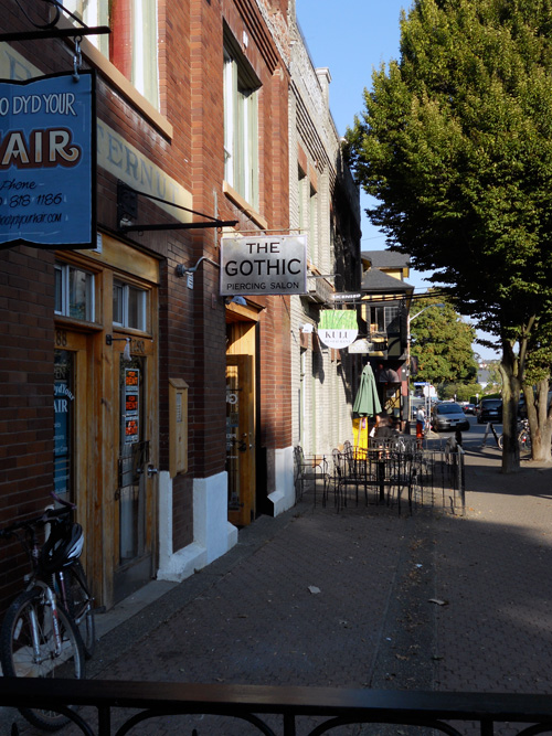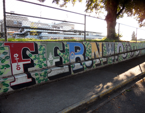 The Fernwood neighbourhood is just on the outskirts of downtown Victoria. I had a work errand to run to the hospital so we decided to make it our walk outing for the day. Fernwood is an eclectic mix of homes with every decade represented from the last 120 years. The small Fernwood Square shopping area includes interesting shops and services as well as a variety of dining experiences from take out Caribbean fare to a pub to a wine bar. The beautiful Belfry Theatre is located here as well. This is a neighbourhood with a real feel of community. We sat out side and shared a stuffed Roti from Stir It Up and watched the evening bike commuters returning home and the sidewalk tables in front of the Cornerstone Cafe full.
