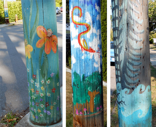 Almost all the electric polls are painted from the ground to about 6 feet up. Each is different and they add to the colour of the neighbourhood!