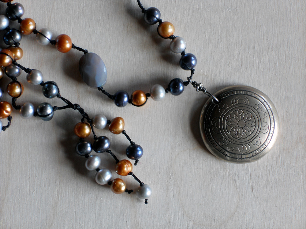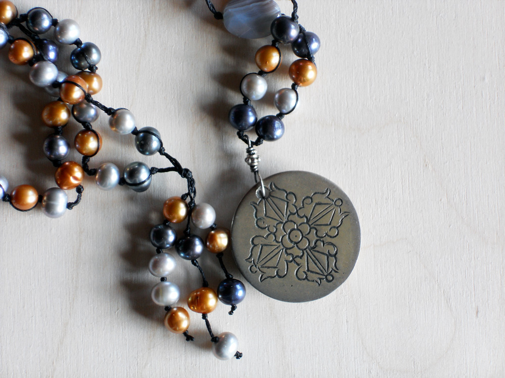 Another busy week: I completed five new Firehorse Designs pieces to go over to Arrogant Pirate, a new shop carrying my, GJ and other artist’s work. I’m still having fun with pearls, braided thread and reclaimed or cast elements.