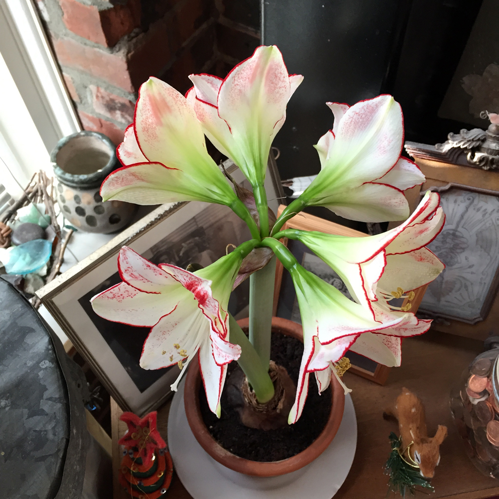 For the first time, we bought an amaryllis bulb and what a beauty it is! The second flower spike is still showing off six gorgeous blooms. There were some amazing weather events and sunsets in December, and many beautiful light and decor displays all through downtown and all the other neighbourhoods.