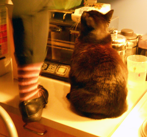A recent cleaning project: the dreaded top of the kitchen cabinets. TC is hinderi… I mean helping.