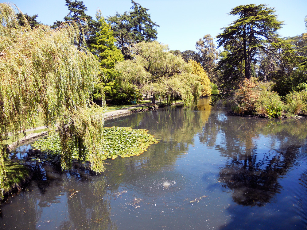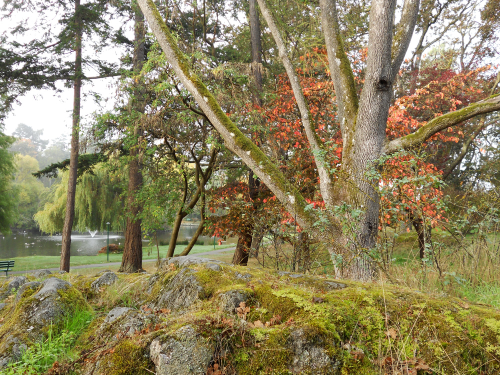 Looking over a pond from the stone bridge in Beacon Hill Park, Victoria BC. I love all the colours and reflections.