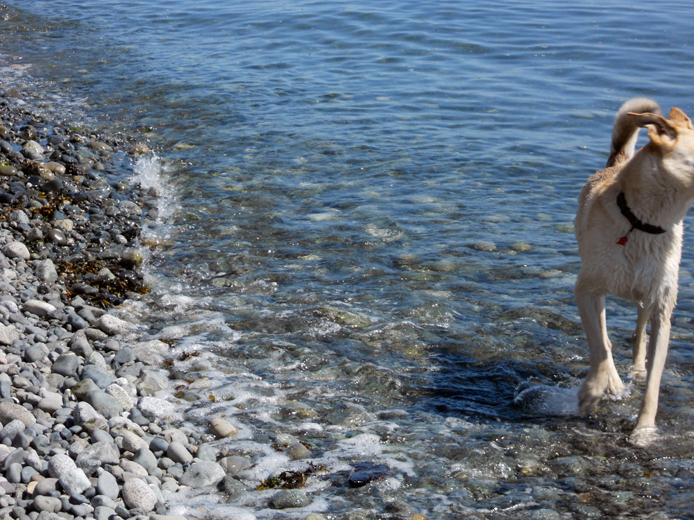 Duece is an awesome yellow dog who lives with her human, our friend Feather George, in Tofino BC. She was loving the water after a day of walking all around the city.