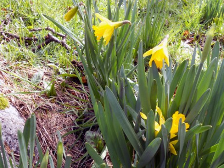 Went for our usual wander yesterday. It was threatening rain when we left, but soon the sun was peeking through and it was a lovely day. After a snack at Tre Fantastico, Parkside we headed into Beacon Hill Park. There had been quite a wind storm on Monday and it’s destruction was evident there. However, the daffodils abound and buds of new life were everywhere: spring is truly here! The tide was low, so once we made it to the beach we were able to walk almost all the way to the breakwater along the sand and over the rocks. On the way home we ended up at Dales Gallery for a visit with the owner. There’s a nice show of photos by Dag Goering on right now. Wouldn’t you know it, snow flakes began to fall!