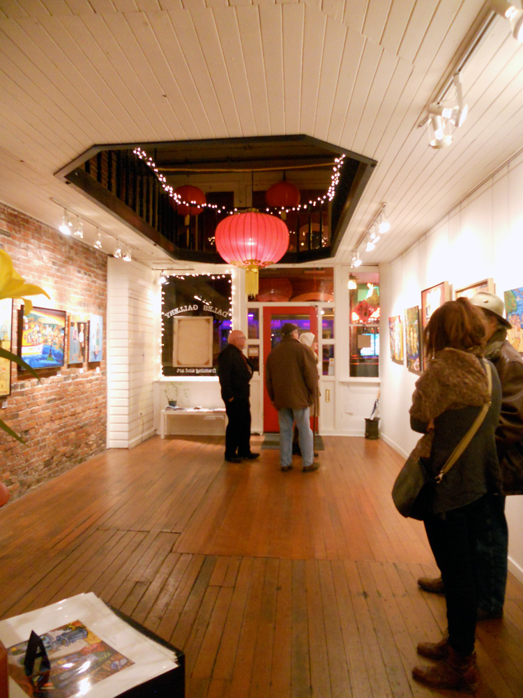 Every month is for art in my world, but this month is special. A while ago, we were given an opportunity to curate a show at Dales Gallery, right here in our neighbourhood. GJ and I have both shown our own work there, and love the owner and atmosphere. There was an opening for this month and we decided we would organize a show for our friend Michael Lewis. It’s been a real treat working with Michael and the gallery to make this show happen. Michael has had some great press (here and here) and we’re very happy that sales are going well. Here are a few photos of the process and the show.