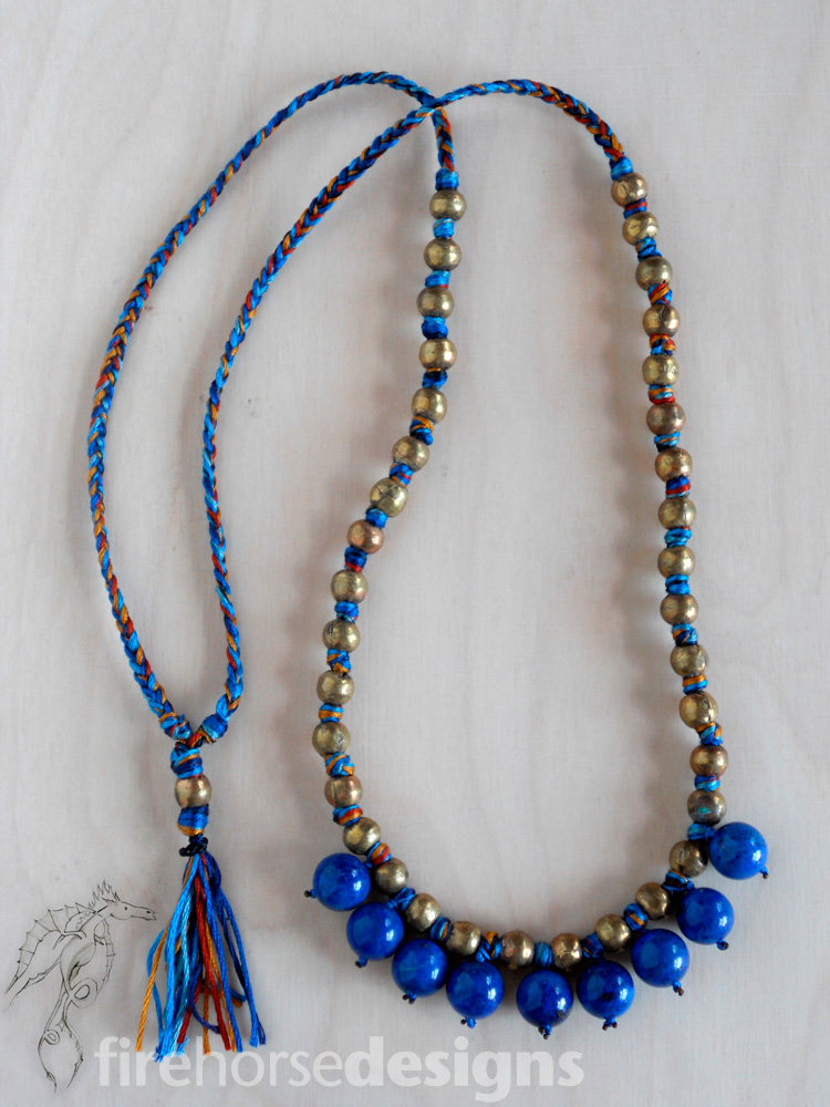 I’ve been working on a few new pieces lately. This one took forever, and I’m very happy with it. The glass and brass pieces are probably from a bracelet. I found them in a random bag of bits and pieces, mostly broken, I bought at the flea market a few years ago. The rest is new – freshwater pearls, amethyst, and smokey quartz with a brass clasp.