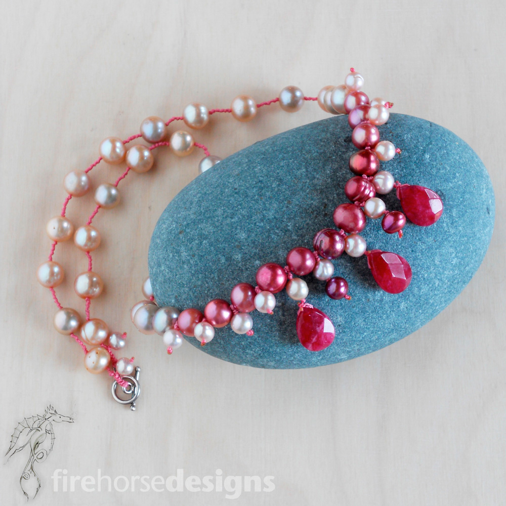 The design is approved, and now I have all the materials in front of me. Wedding jewellery commission for a friend in pearls of cream, light grey, and rich purple-grey. More on this one later…
