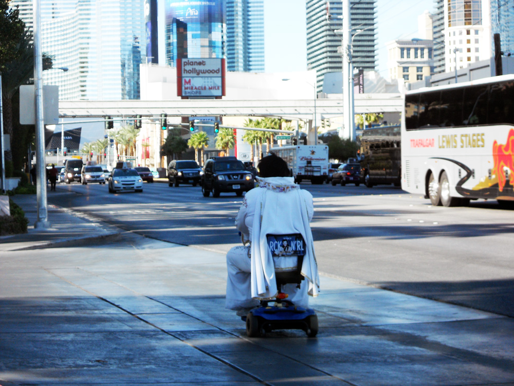 The most awesome thing we saw: Elvis riding a mobility scooter.