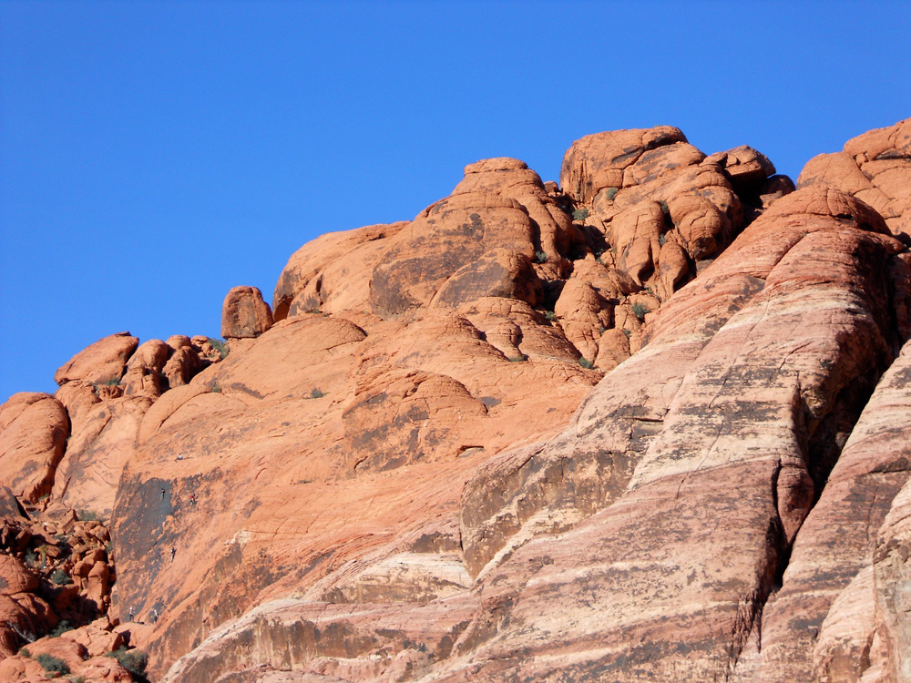On Wednesday, we drove with K and R out of town a bit to Red Rock Canyon. It’s amazing how close to the bright lights this National Conservation Area is. The colours are astounding; layers of reds,  yellows and grays and then the variety of green in the abundant flora. We even saw a (too) friendly chipmunk looking to be fed for his participation in a photo opportunity (strictly against the rules – the feeding, not the photos!). It would be fun to explore some of the other wild places in the area, like Valley of Fire State Park, where my sis and her fella spent the day at on thursday. Here are a few pics of Red Rock: