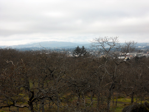 We took a lovely walk the other day to a part of the city we rarely visit, even tho it was only about 40 minutes by foot. In the Hillside-Quadra neighbourhood of Victoria is a wonderful Garry Oak grove called Summit Park. Next to it is the old Smith’s Hill Reservoir, shortly used in the early 1900s and fallen into disrepair. I find the rough and ragged beauty of the place astounding, and there are some beautiful views of the city to be had. Many years ago when I lived nearby, I remember how magnificent it was in the early spring when the crocus were in bloom: a tranquil sea of purples and white.
