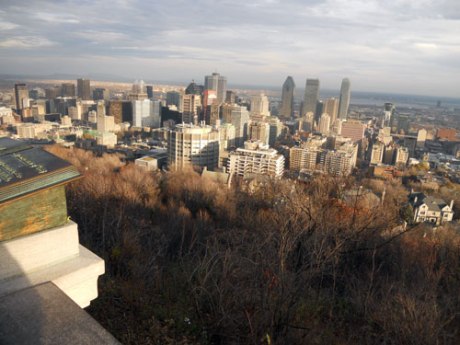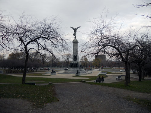 Leaving Mile End we headed down rue St-Urbain to rue Rachel and entered Parc du Mont-Royal through Parc Jeanne-Mance and past Monument à Sir-George-Étienne-Cartier. We thought we may as well walk up the paths a bit since we were there! So off we went. There were a lot of people walking and running. We made it up as far as Chalet du Mont-Royal and took in the extraordinary view from the Kondiaronk Belvedere. It was almost dark as we made our way down rue Peel towards our chosen dinner destination: Chinatown.