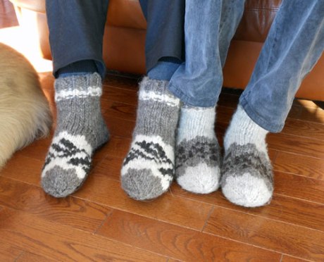 Two of the four pairs of slippers we commissioned from a beautiful artisan we met in Victoria along the causeway where First Nations and other artisans sell their beautiful crafts.