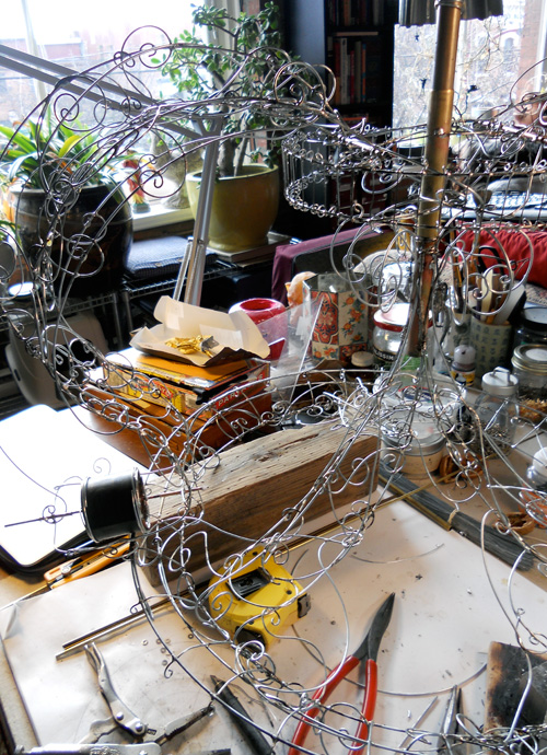 I love to watch GJ work. How he translates what he imagines into an exquisite object or painting is astounding and never fails to delight me. Here’s a pic of a work in progress.