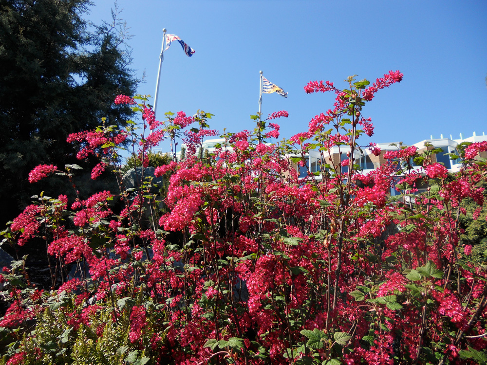 Took a short walk across the bridge to Vic West yesterday with friends. The sun was shining and very warm. The blossoms are dropping creating a carpet of pink on the sidewalks and streets, and leaving behind the fresh bright greens of spring.