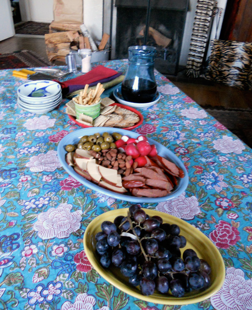 Tarts in the oven for feasting day 2. Had an amazing meal yesterday at the delectable home of Annie. She went all out, of course, with full-on nibbles spread followed by the main attraction: the works. GJ did a little chore of replacing some weather stripping and we ate and drank all night! Forgot to photograph my dessert offerings: pumpkin pie and warm ginger pudding cake. Tonight we’re off to another meal with friends. Photos tomorrow…