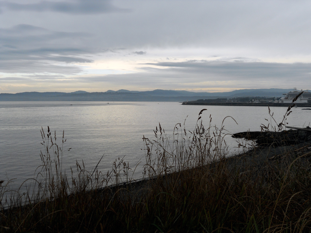 A grey day at the harbour. The famous Victoria flower baskets are beginning to wain, but the “Welcome to Victoria” red flower beds along the lower causeway are still vibrant and inviting.